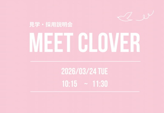 - 「採用に関するお問い合わせ・ご応募」フォームの質問欄に「MEET CLOVER希望(1または2)」とご入力の上、ご連絡ください。